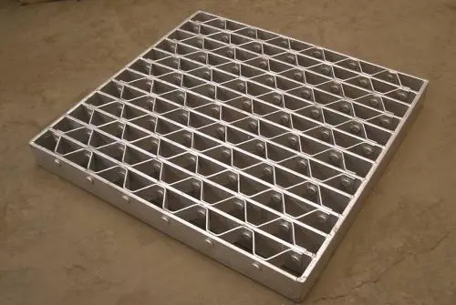 鍍鋅鋼格板是由負(fù)載扁鋼和橫桿按一定間距經(jīng)緯排列,在高壓電阻焊機(jī)上焊接而成原板,經(jīng)切割、切口、開(kāi)孔、包邊等工序深加工而成客戶(hù)要求的成品。然后經(jīng)過(guò)表面熱鍍鋅或冷鍍鋅處理。